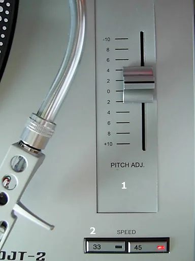 O controle de velocidade ou pitch control permite ajustar a rotação do prato.